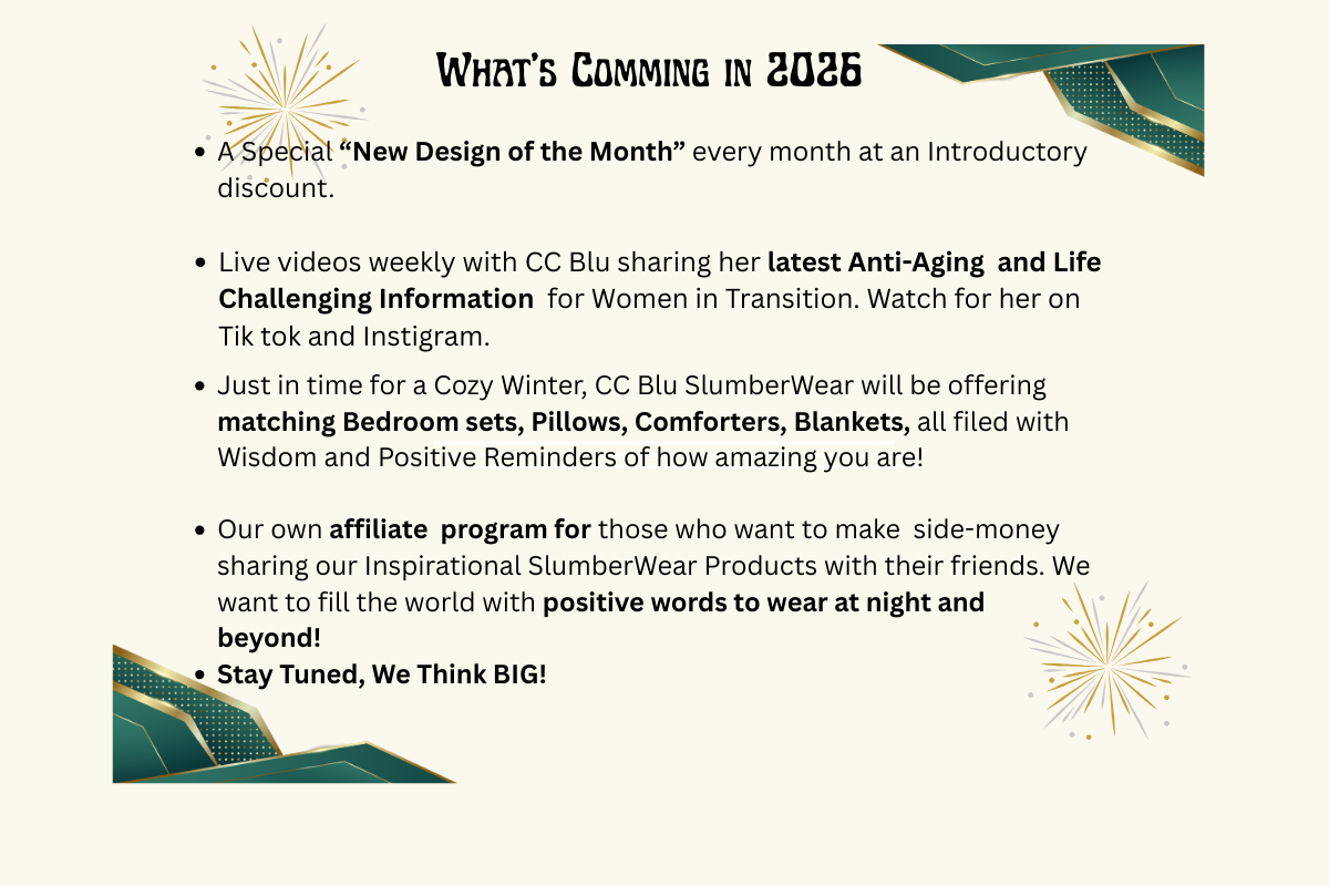 We do this by consolidating the Amazing Healing Powers of Sleep, and by printing both Wisdom Words, (for Personal Growth) and Inspirational Words, (for Encouragement), on both the Front and the Back of all SlumberWear Garments, Matching Mugs, and Matching Personal Life-Tracking Journals.