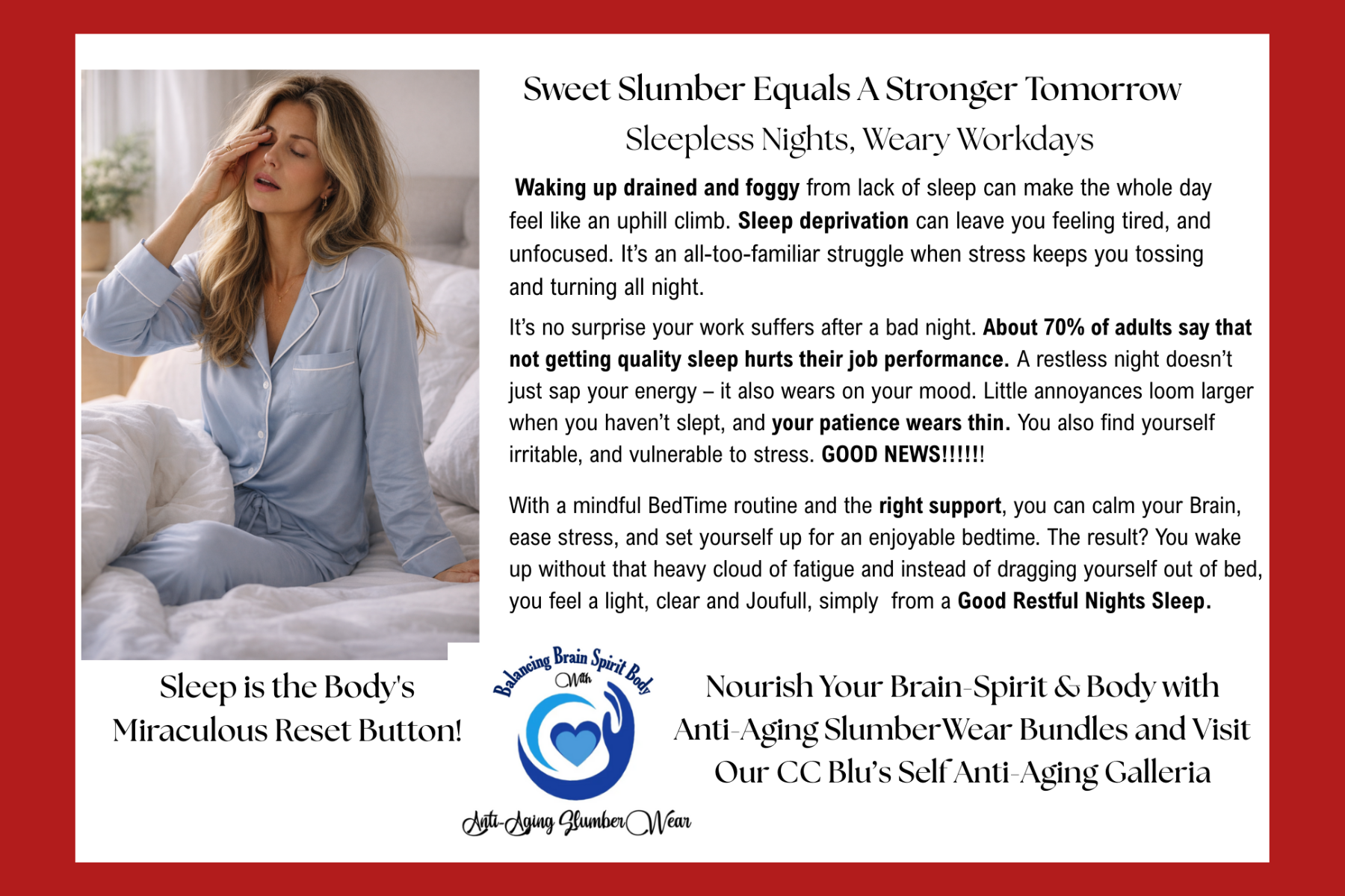 At the Anti-Aging SlumberWear Sleep-shop, our goal is to give you the tools you will need to Awaken Your Natural Self-Healing Body Rechargers!